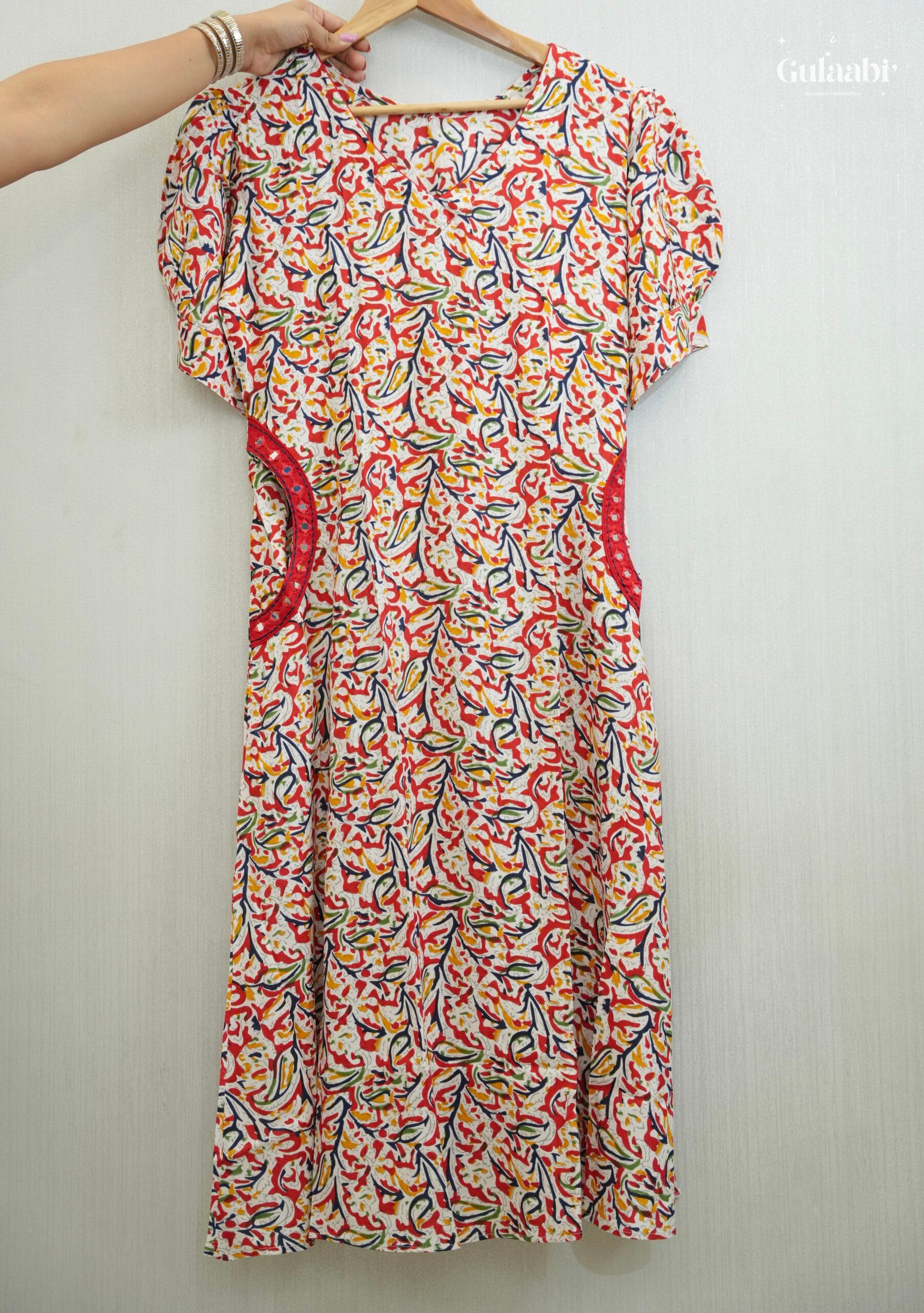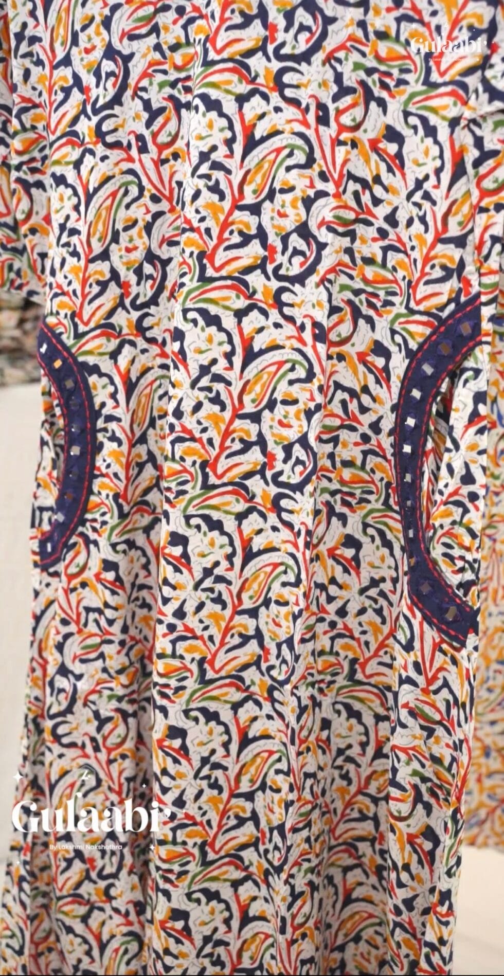 Introducing our aline cotton rayon kurtha as “Aadvika” cotton rayon aline top with pockets mirror detailing highlighted on pocket