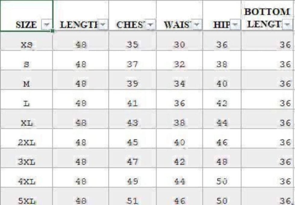 Xs, S, M, L, Xl, 2xl, 3xl, 4xl, 5xl