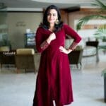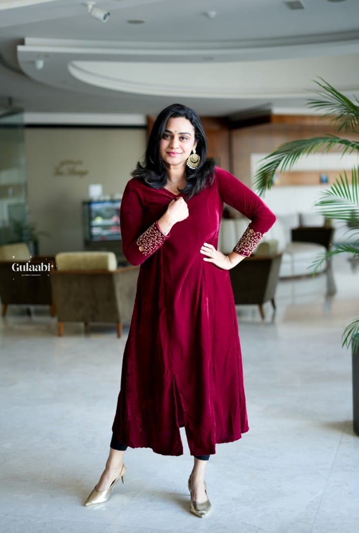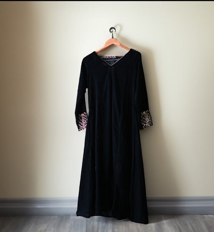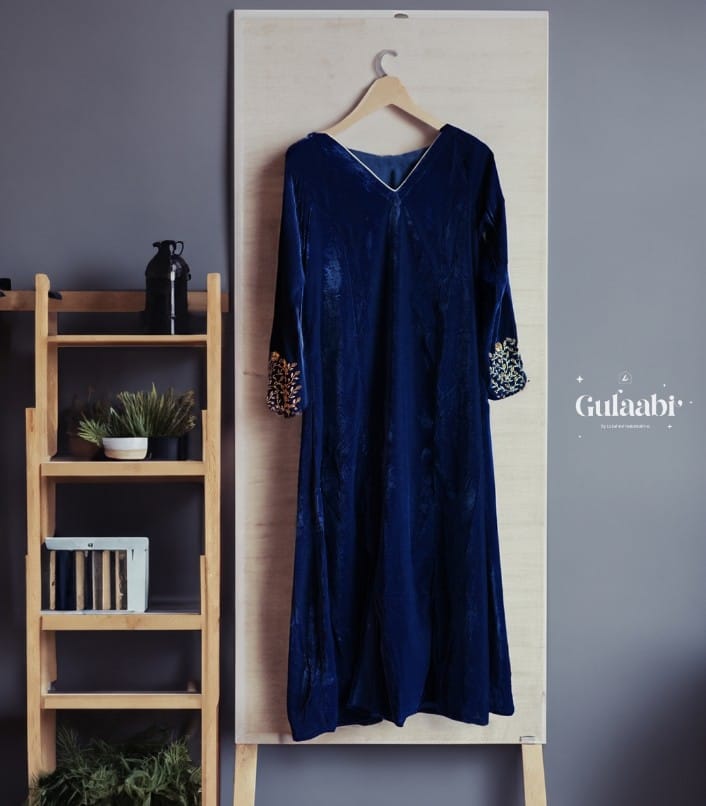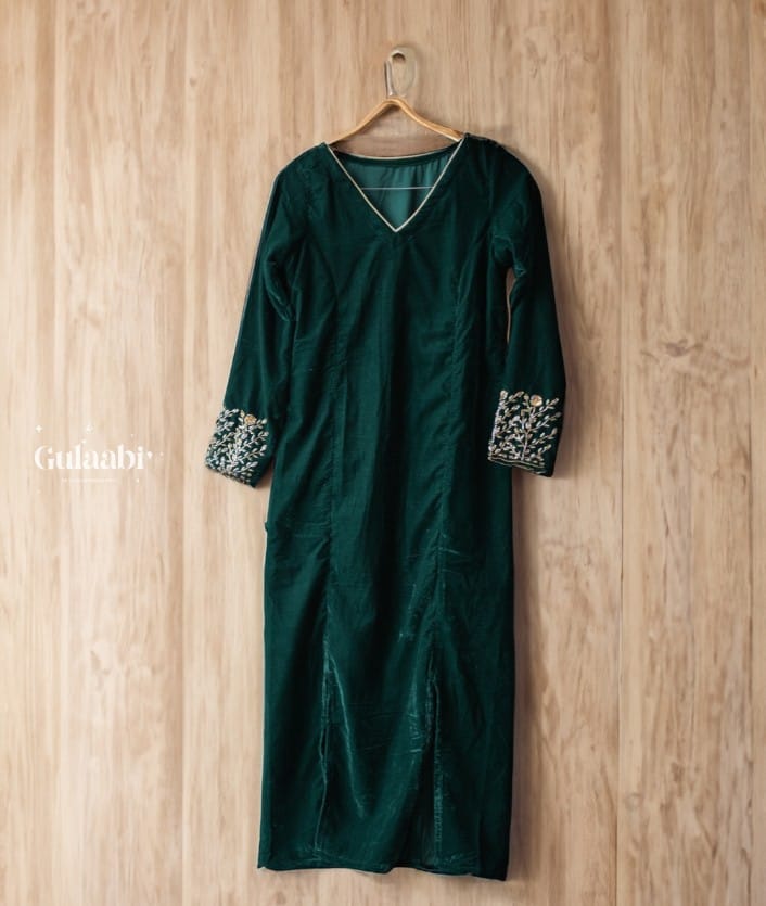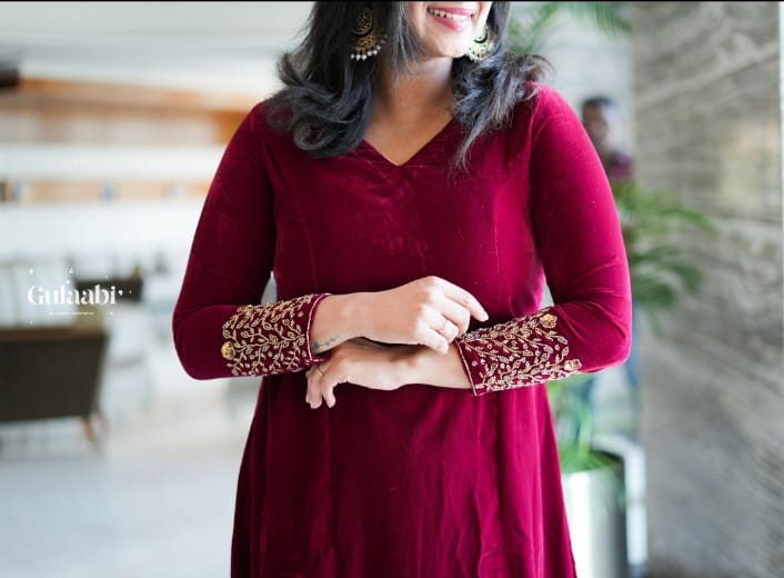 Aline velvet kurtha with heavy handwork on the sleeve end