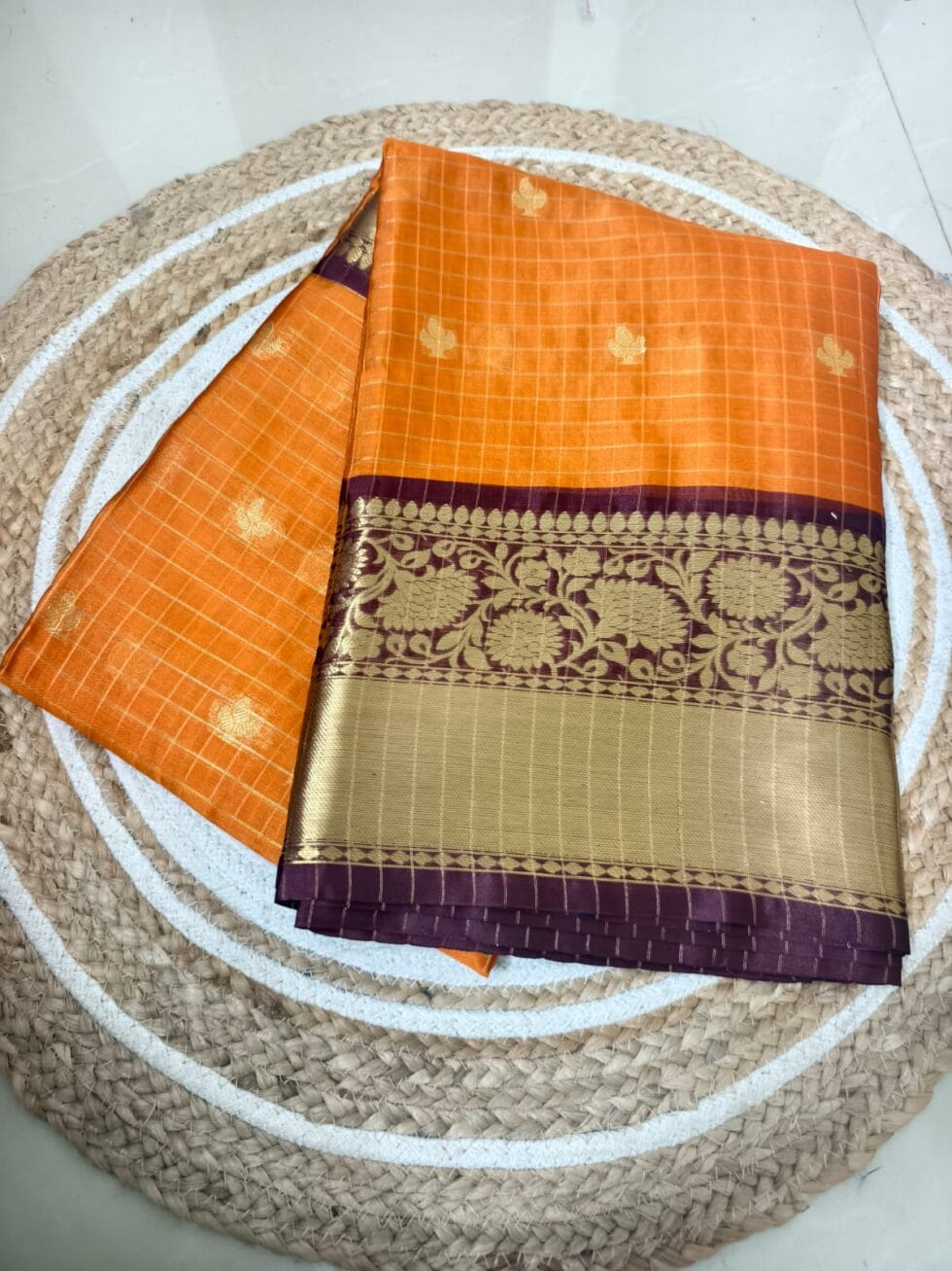 New silk saree with contrast border and small bhuttas all over body