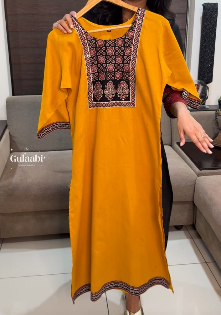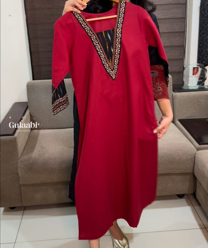 Linen cotton kurtha with ajrankh patch