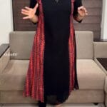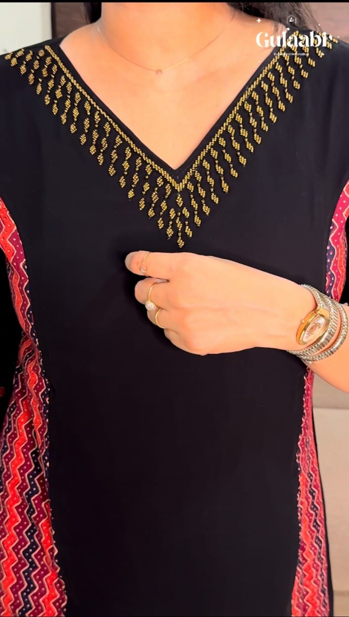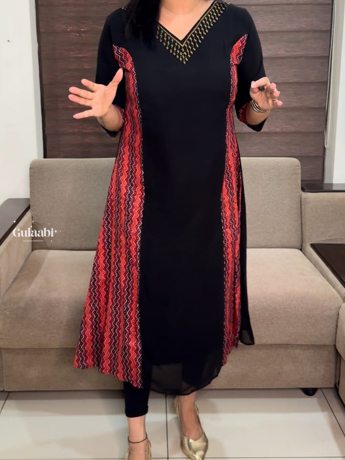 Georgette Kurthi with ajrankh patch on both sides and hand work on the neck