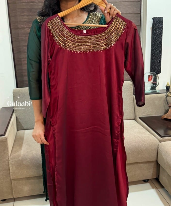 Roman silk with heavy work on neck