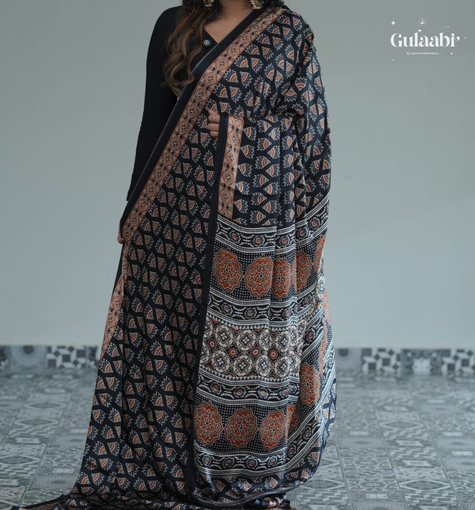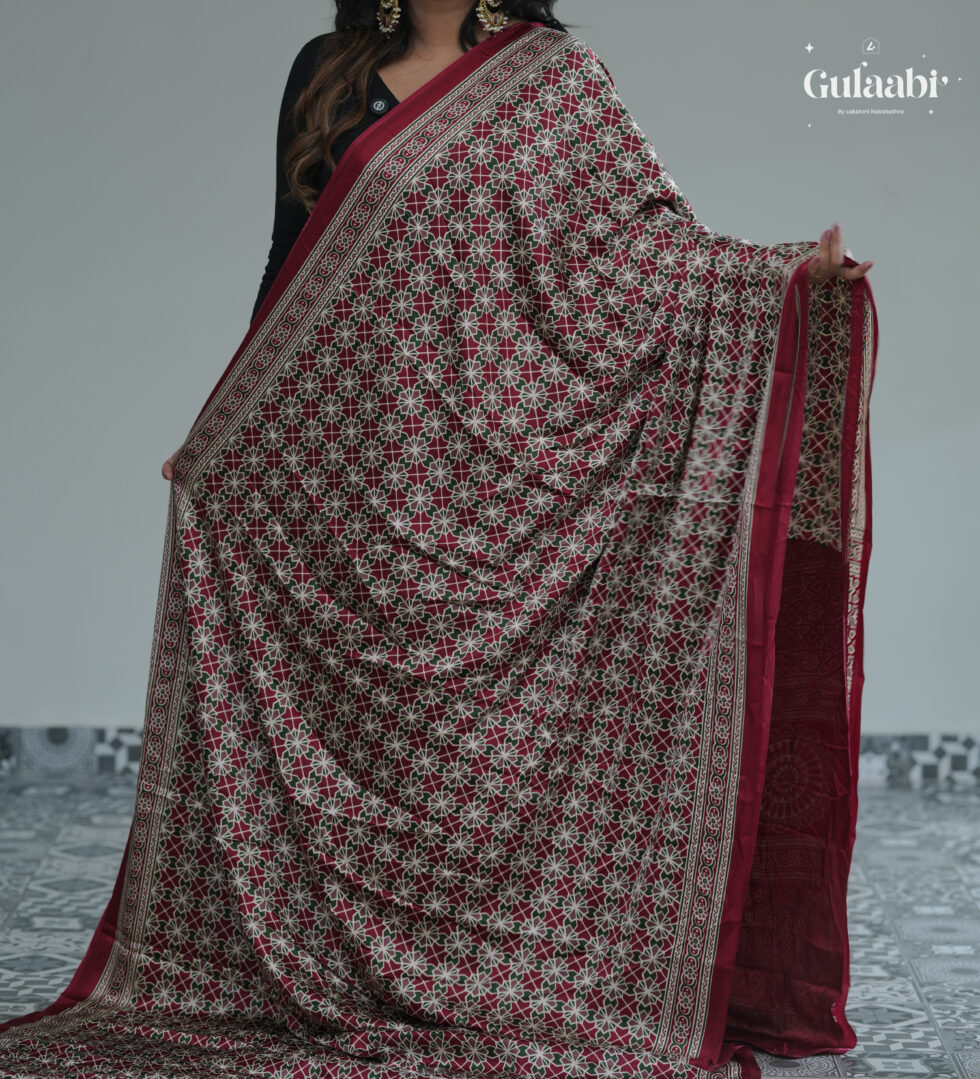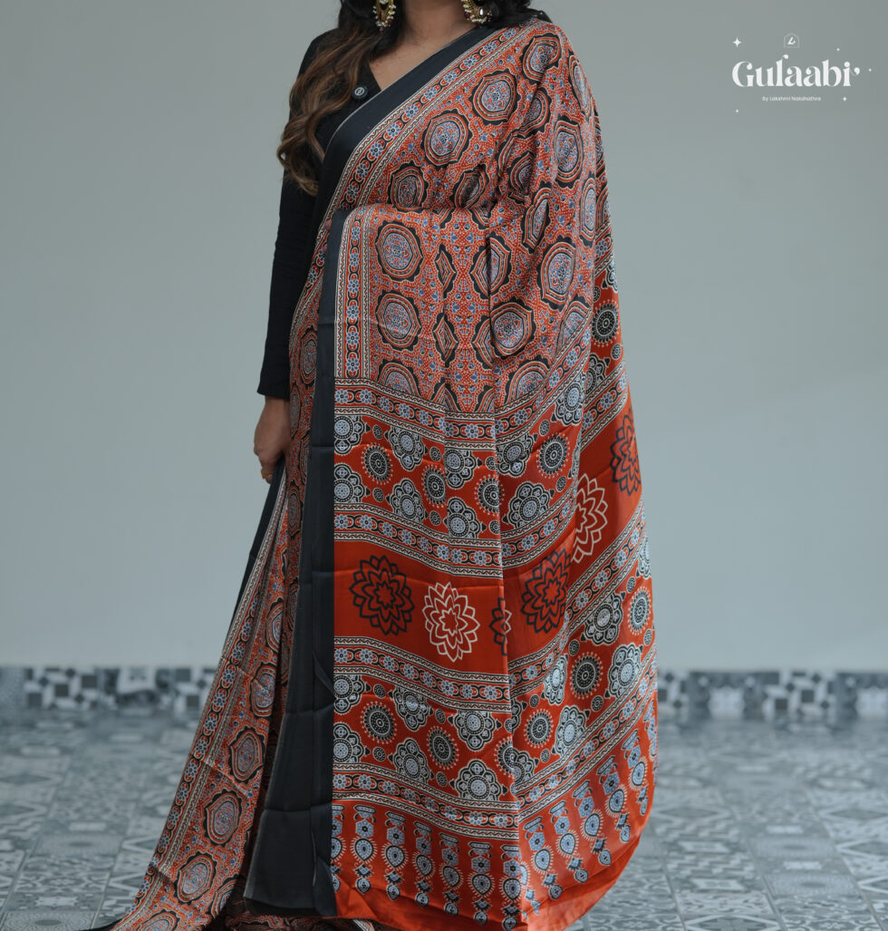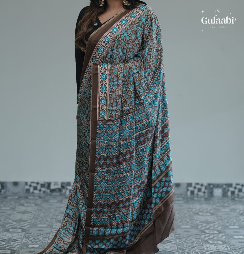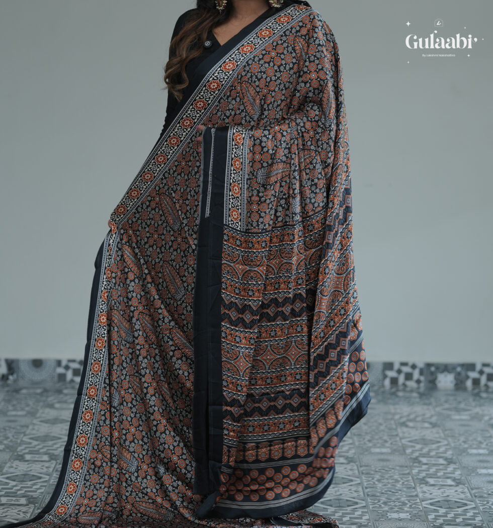 Semi modal silk saree with ajrankh prints