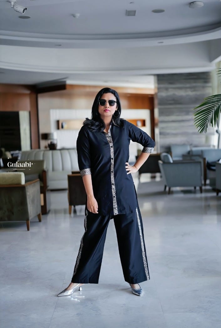 Introducing our slub silk cordset with animal printed patch