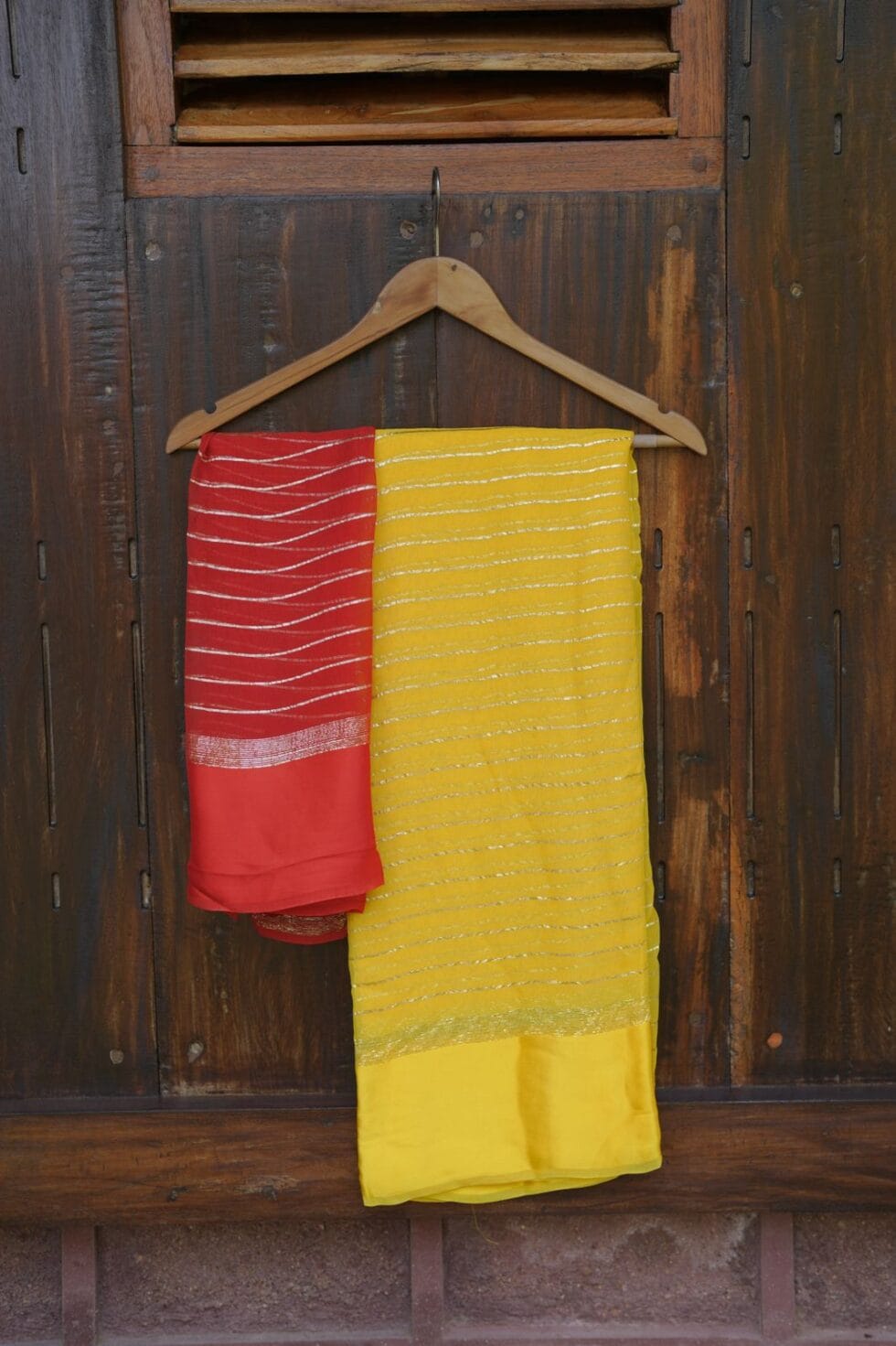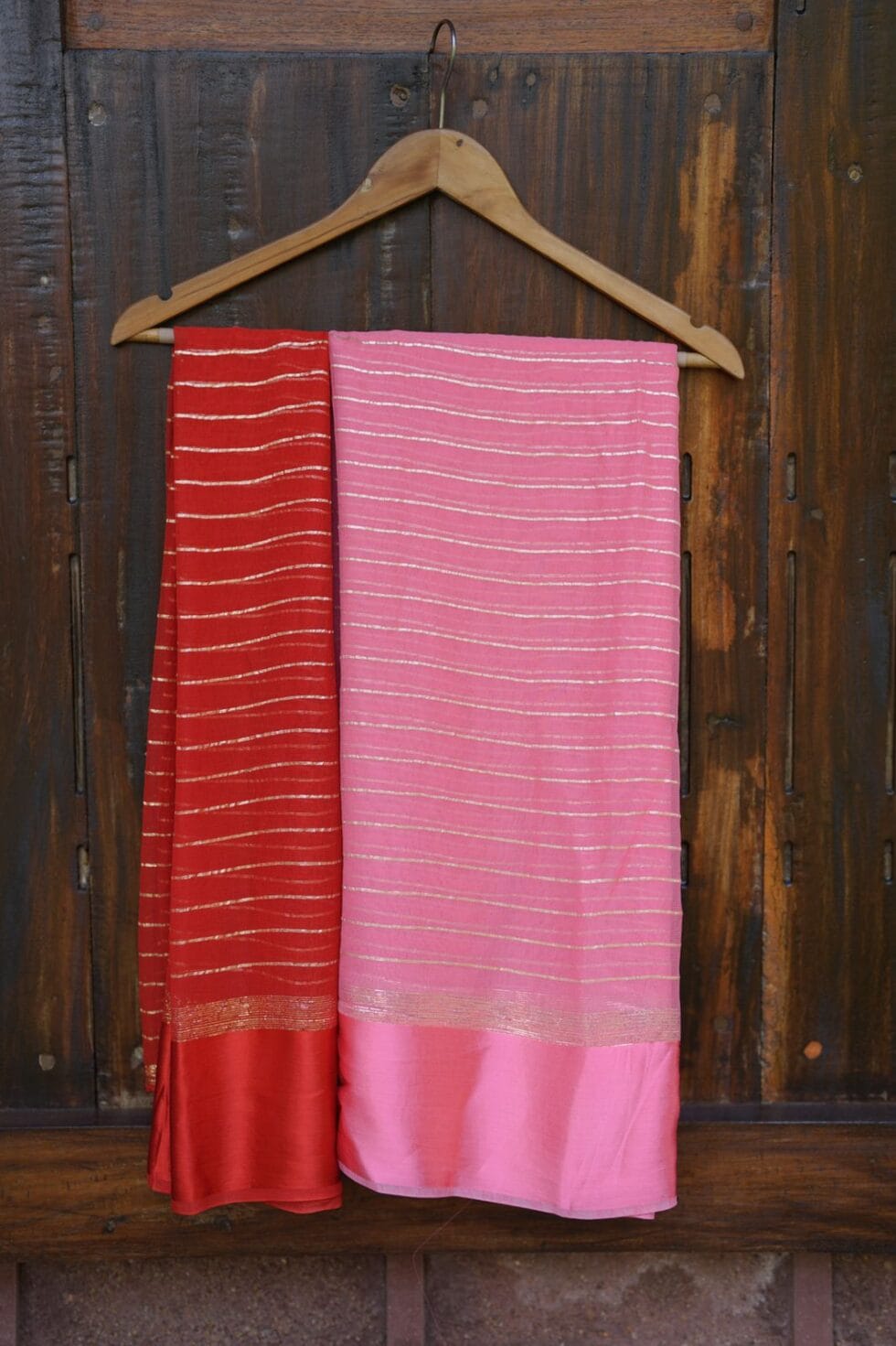 Introducing our new saree as “Janam” new faux Georgette saree with zari stripes whole over the body