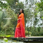 New mulcotton saree with dual tone and zari line in the body and tassels attached.