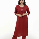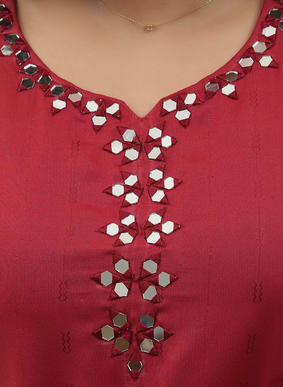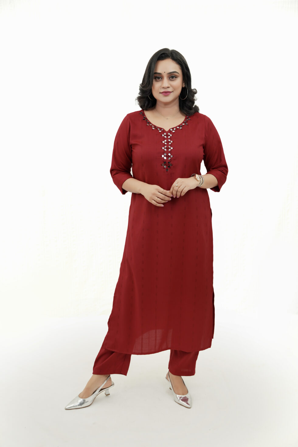 Cord set with a smart rayon fabric and original mirror work on the chest