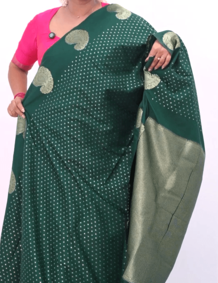New semi silk saree with small bhuttas all over body with blouse attached