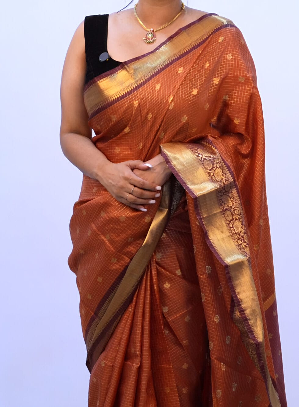 New katan silk saree with contrast border