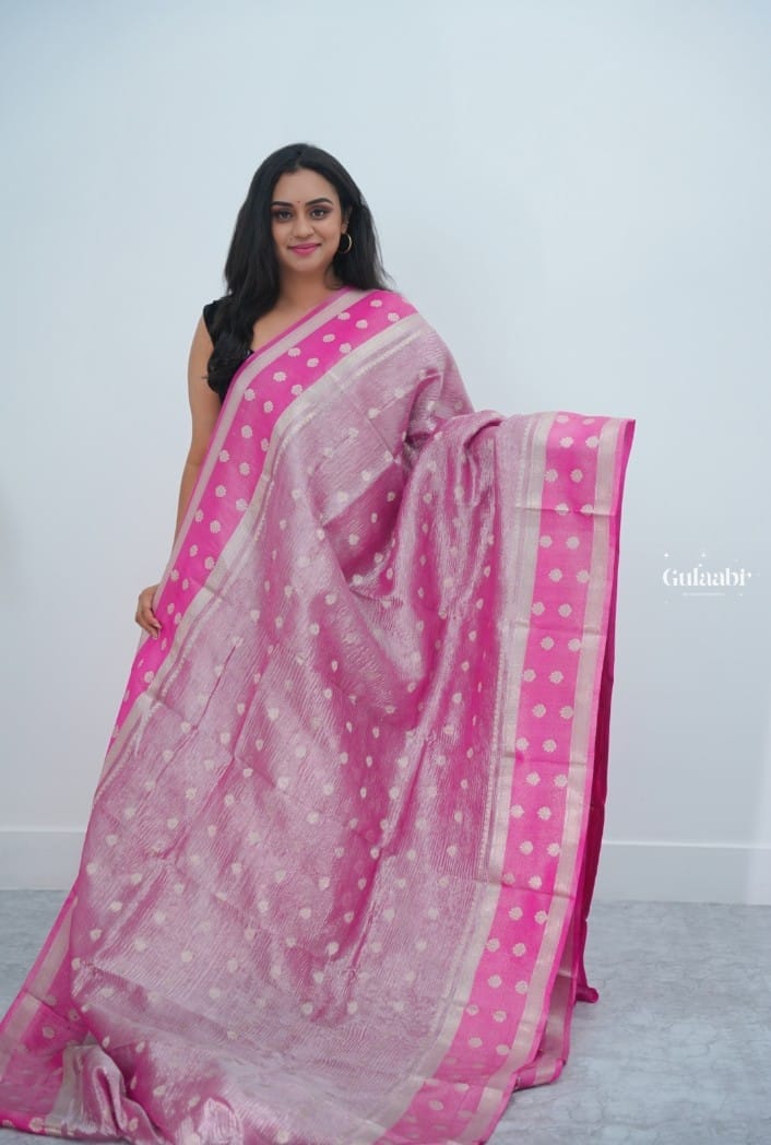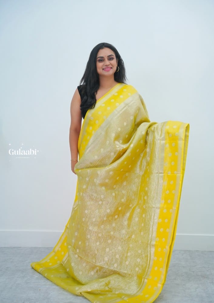 Crushed tissue saree with all over bhutta