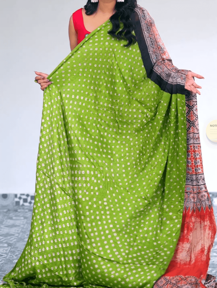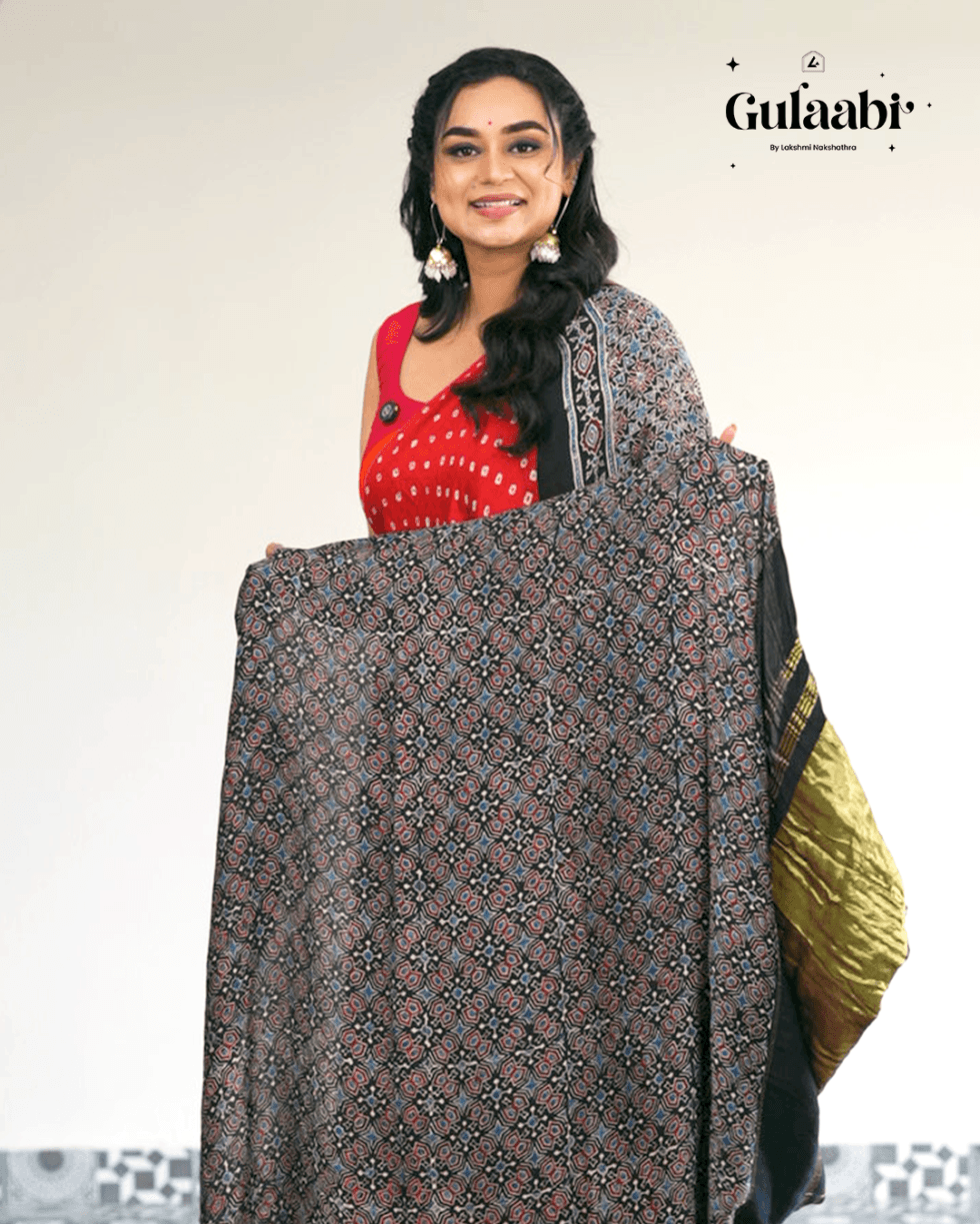 Pure modal silk saree with ajrankh work on pallu